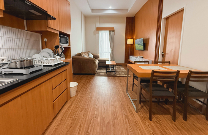 Azalea Suites Cikarang - This renovation is not just about replacing furniture, but unifying all interior elements through wooden floors and color consistency. The result is an elegant, calm residence with a strong design character.
